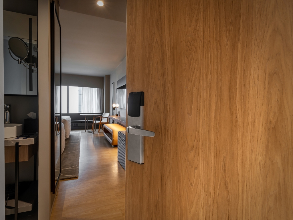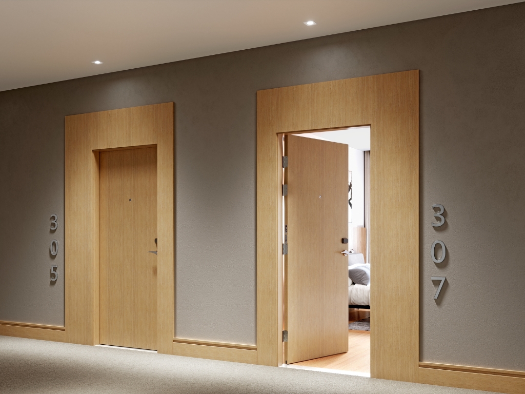 Nossa Porta Resistente ao Fogo (PEM RF/EI 30 + IA) é pioneira e referência no mercado, com mais de 30 anos de fabricação. Projetada para garantir segurança em nível profissional, ela é ideal para entradas de unidades autônomas , como quartos de hotéis, flats e estúdios e também é homologada para atender às normas ABNT NBR 9077 e NBR 9050, desempenhando a função de porta de acesso para apartamentos NR, assegurando proteção e acessibilidade no dia a dia.